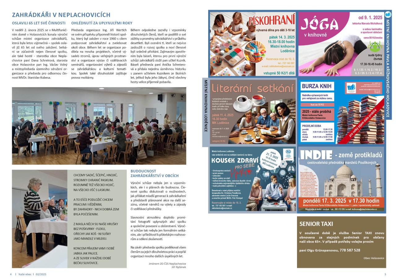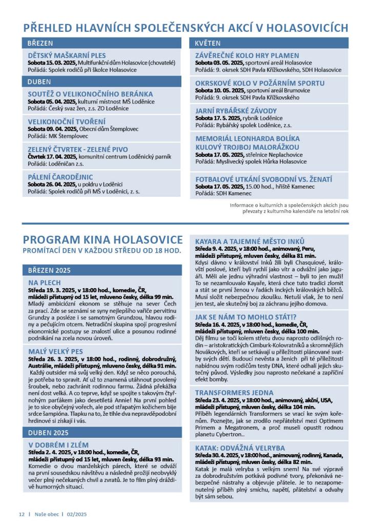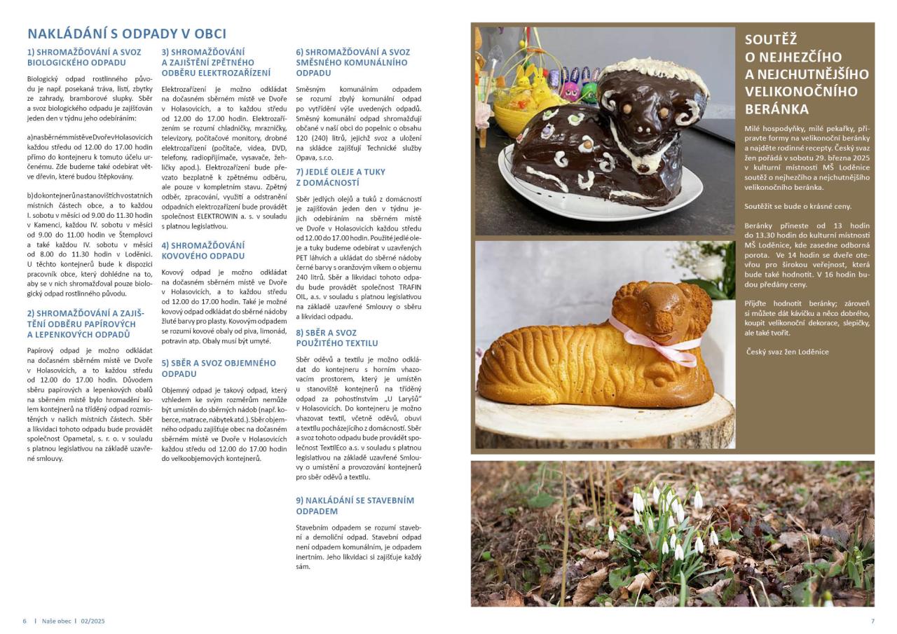 Zprávy z obce ■ Vakcinace psů proti vzteklině ■ Zápis žáků do 1. třídy pro školní rok 2025/2026 ■ Zahrádkáři v Neplachovicích ■ Nakládání s odpady v obci ■ Soutěž o nejhezčího a nejchutnějšího velikonočního beránka ■ TJ Sokol Holasovice, z.s.